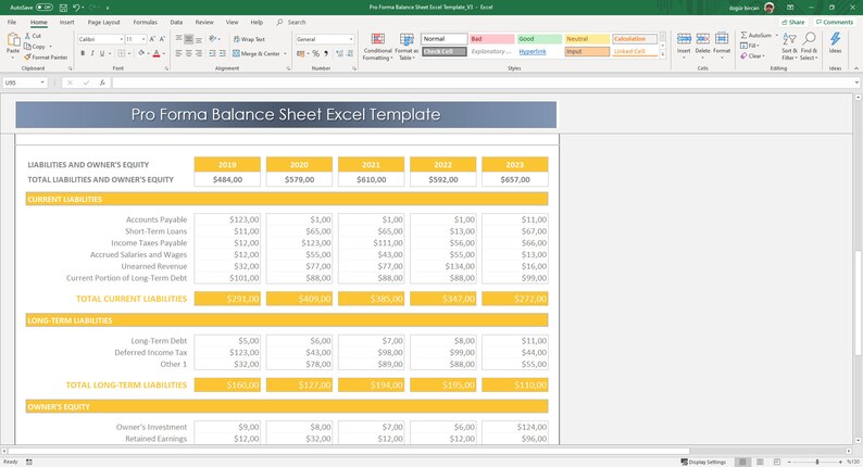 Pro Forma Balance Sheet Excel Template | Etsy