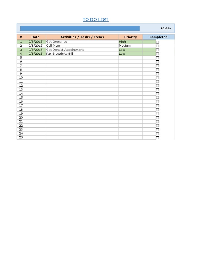 Excel to Do List Template Checklist